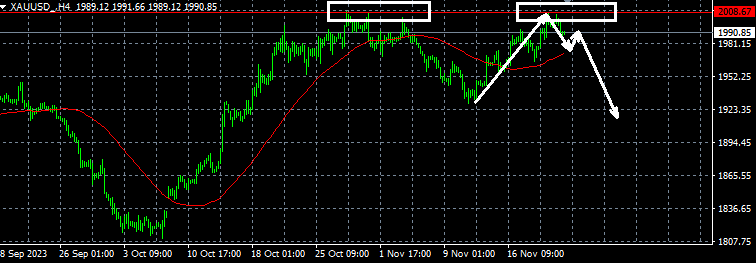 黄金2000空,止损2008,目标1970
