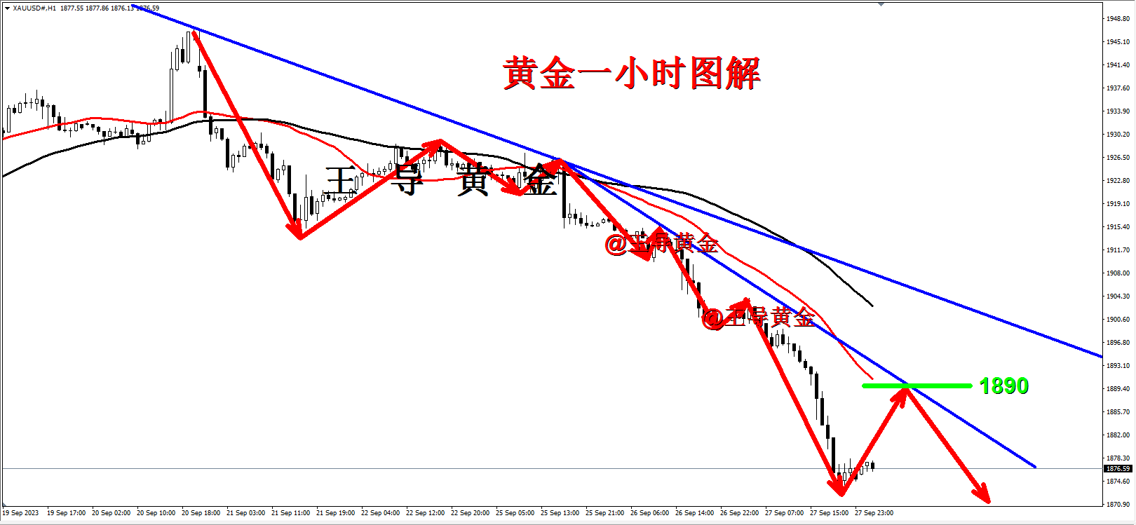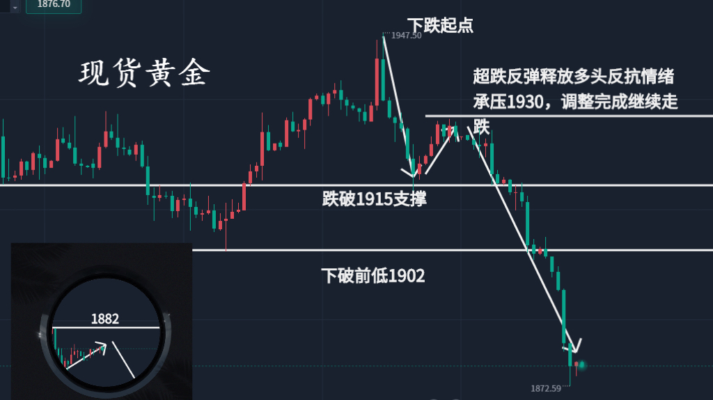 黄金跌势强劲,日内反弹至1890顺势空