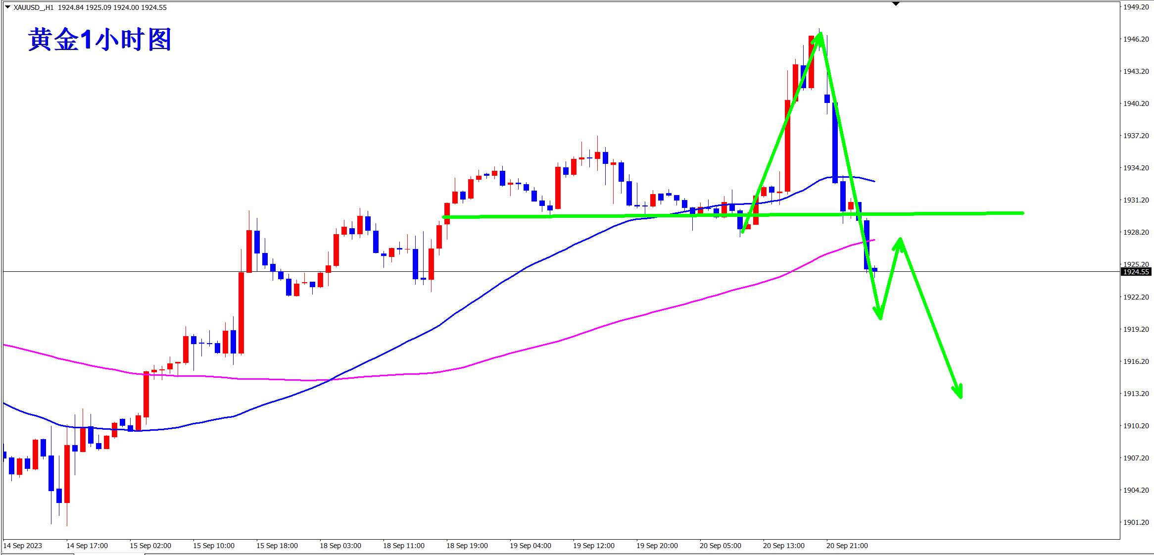 昨日黄金开盘1932.13美元,最高1947.30美元,最低1927.70美元,收盘1930.20美元,报收上影流星小阴线线。本月非农日我们开始看空黄金,上周提到继续下行,但是,黄金跌了1910下方之后,我们反复强调下跌不杀跌随时