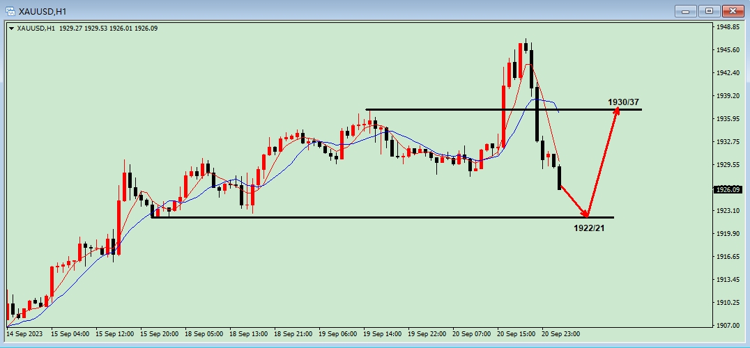 黄金冲高回落还有下跌空间 凌晨的美联储利率决议维持不变,鲍威尔在发布会上表示美联储准备在适当的情况下进一步加息,并打算将货币政策保持在限制性水平年内或再加息一次,美指飙升黄金后半夜走出跳水。以目前的