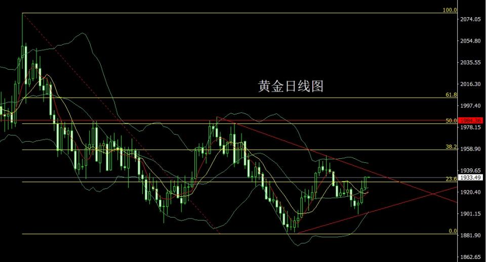 昨日黄金市场早盘开盘在1924的位置后行情先回落给出1922.4的位置后行情拉升,盘中给出1930.7的位置后行情回落,美盘给出1922.6的位置后行情尾盘强势拉升,日线最高触及到了1934.2的位置后行情整理,日线最终收线