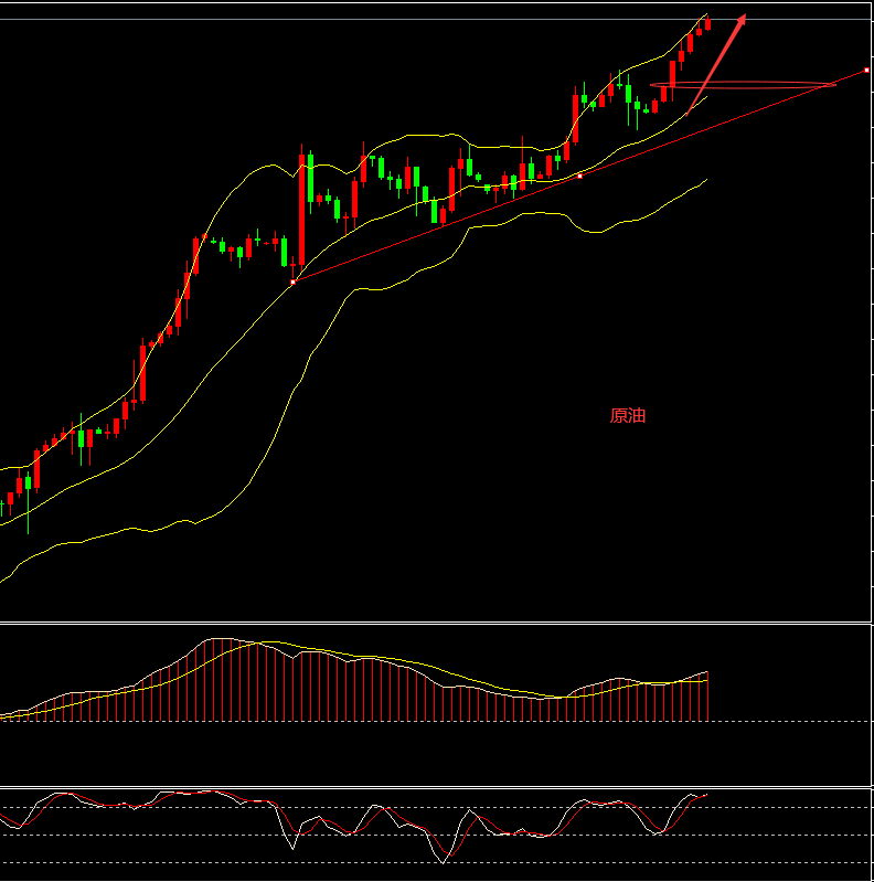 原油昨日中阳线进一步高位放量拉升。周初连续的十字星K线整理,结合上周的连续星线整理蓄势,本周至了周尾才形成放量中继上涨,进一步创新高至90.83.短线上涨符合预期,日线收得饱满,日内短线仍将延续涨势。 4