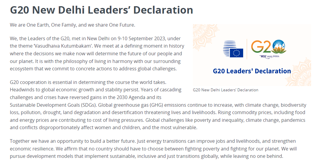 G20第18届峰会在印度新德里闭幕,巴西正式接棒成为新一任轮值主席国。此次峰会亮点包括非洲联盟成为G20正式成员、G20通过联合宣言、美印建立印度—中东—欧洲经济走廊(IMEC)。与此同时,阿里集团CEO