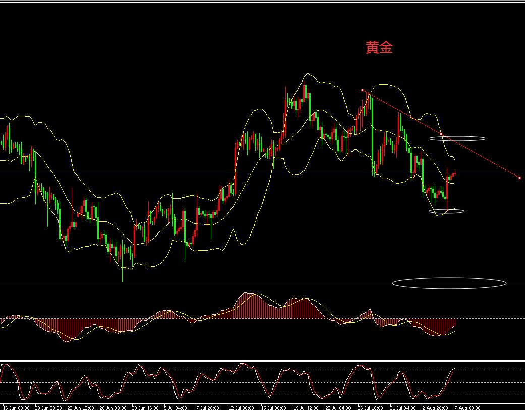 4小时图下探回升一根大阳线收复部分失地,反弹触及破低口的阻力没能压制重新收跌。4小时K线暂时进入震荡,震荡行情重点在于区间的把握,在下轨处启稳,目前关注上轨的阻力,不是单边行情,极有可能出现回马枪,反