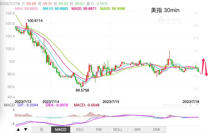 DooPrime德璞资本:美指中期走势自7月6日以来K线连续收阴5个交易日,且阴线实体越来越大,不论从连续性和动能看均空头占强劲态势。美指中期100.80已被跌破。均线系统转入空头排列,中期下行空间被进一步打开,中期