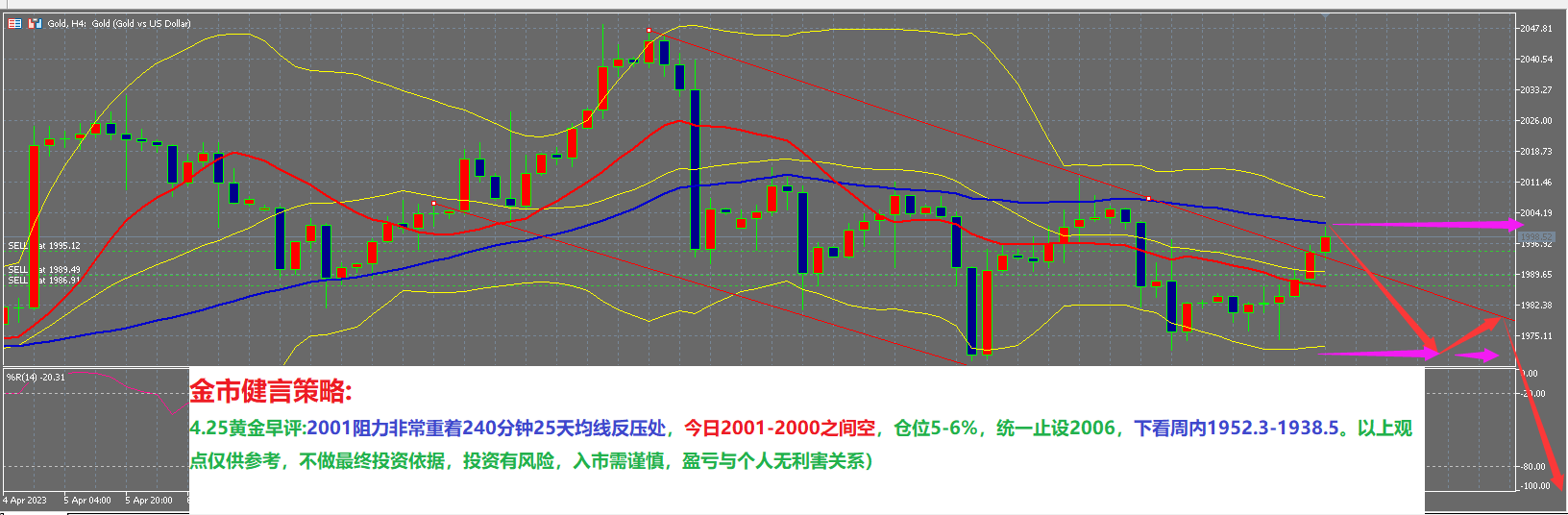 DooPrime德璞资本:黄金坚定2001/2000干空! 4.25黄金早评:2001阻力非常重着240分钟25天均线反压处,今日2001-2000之间空,仓位5-6%,统一止设2006,下看周内1952.3-1938.5。以上观点仅供参考,不做最终投资