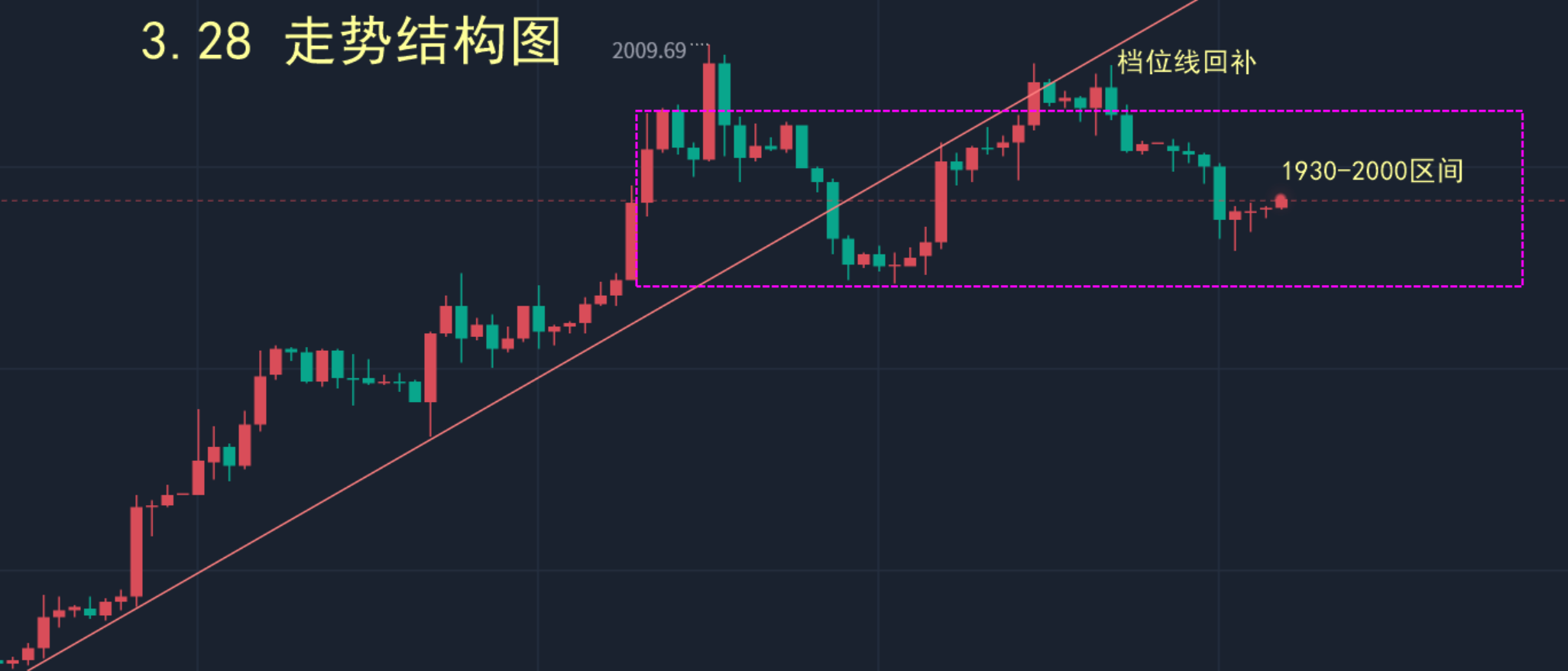 黄金日线阴阴阳阳大扫荡,继续蓄力上行 上周周评文章提到黄金回踩小时图144日均线1935是一个相对合理的多单位置,之后黄金1934-35开启了上行一路上涨到2000美元。在上周的文章和微博中,我们强调只要不过2003美
