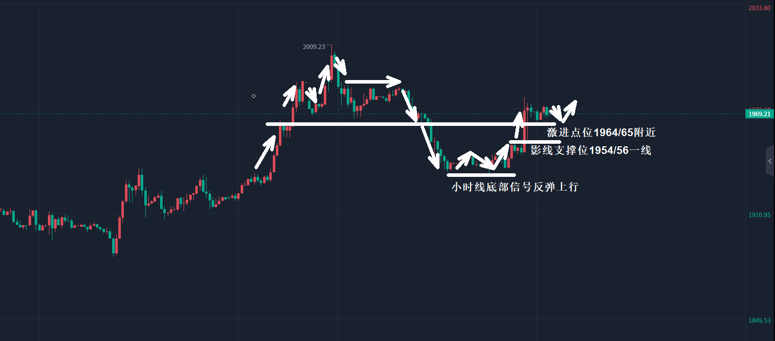 黄金昨天整体走势震荡慢涨,在回撤试探下方支撑1934-35不破的情况下走出反弹,我们白盘也是给出1937的多单获利1945,随后晚间再次回落,继续给出1938的多单直接迎来暴涨止盈1950,凌晨的加息行情没有去参与,不过我