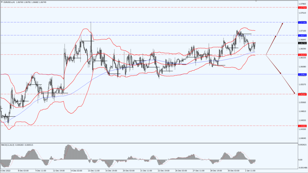 欧元/美元 欧元区12月制造业PMI终值表明,欧元区工业活动的低迷有所缓和,预示着未来经济将出现小幅收缩。调查细节显示,到2022年底,商品需求仍然疲软,但同时也显示了价格压力有所减弱,供应链