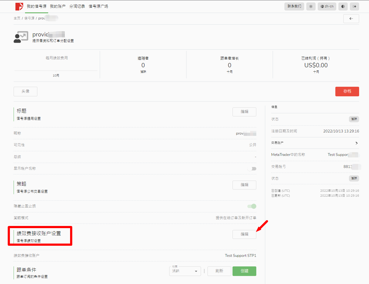 DooPrimeCopyTrading信号源的绩效费将被转入哪个账户? 您好,默认情况下,分润资金是转入信号源的交易账户中,信号源也可以选择绑定一个新的账户,接收分润资金。 1.在「我的信号