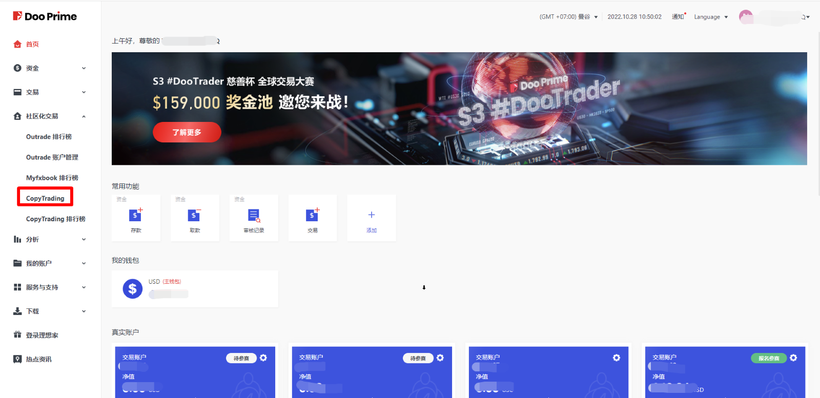 我可以在哪里登录DooPrimeCopyTrading呢? 1.您可以通过Doo Prime 用户中心左侧菜单栏选择登录 CopyTrading。 点击