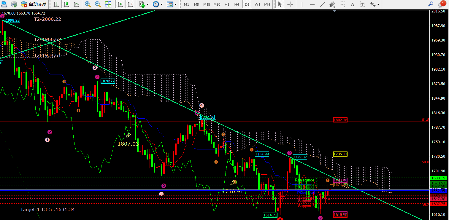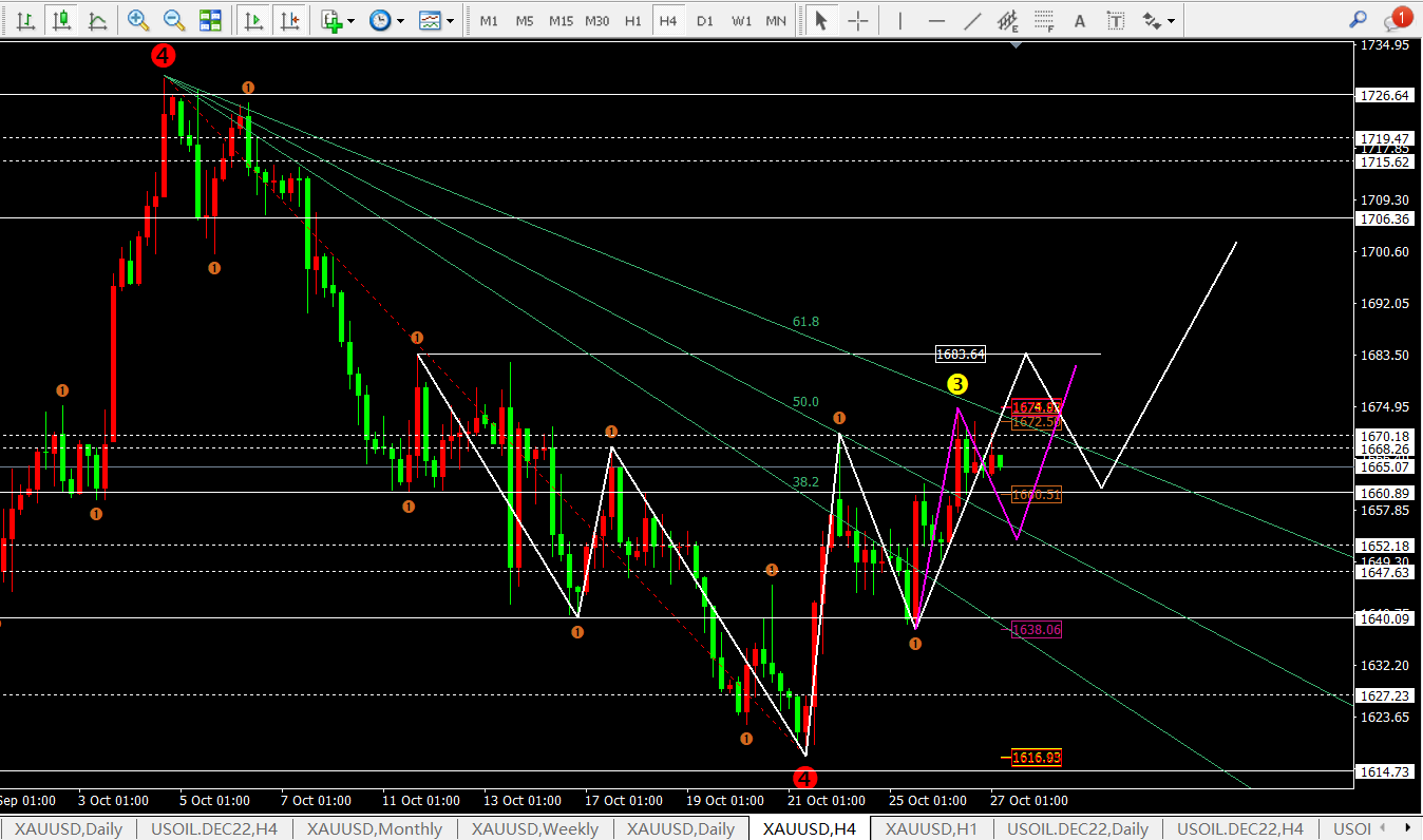DooPrime德璞资本10.27日黄金原油今明两日着手中线多单布局 昨日开盘价格从1652附近震荡下跌至日内低点1649一线开启反弹上涨1674.8一线。之后价格下跌至1660一线再次反弹至1672.5附近震荡回落至1663一线收