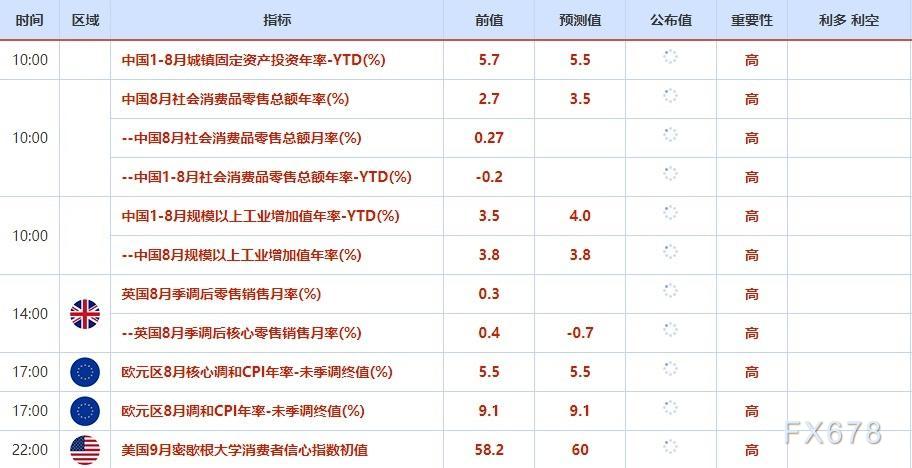 9月16日财经数据和大事件前瞻