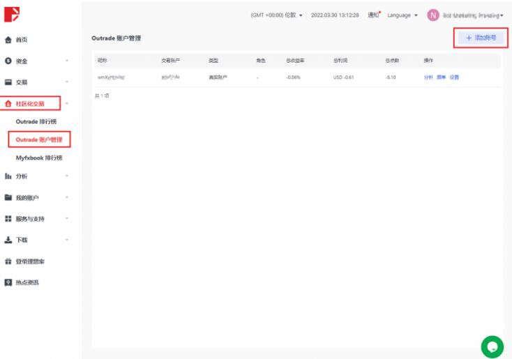 DooPrime如何成为Outrade的交易者或跟随者? 登录您的DooPrime用戶中心,在主页左侧点击「社区化交易」,点击「Outrade账户管理」,在页面右边点击添加账户,选中「交易者」或「跟随者」角色,最后绑定账
