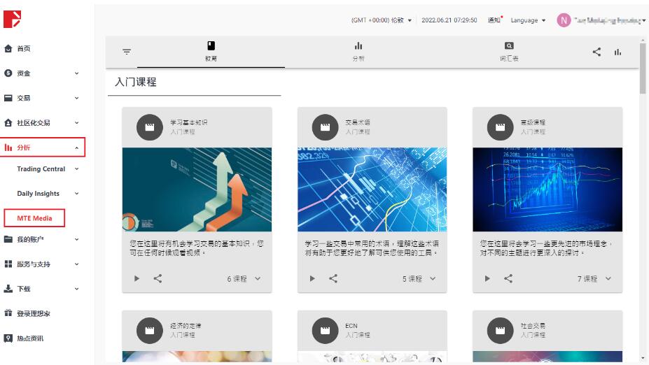 什么是DooPrime德璞资本MTEMedia? 客戶登录DooPrime用户中心后,在左侧栏目点击「分析」及「MTEMedia」,您可在此随意浏览不同的在线投资学习素材,如:教育栏内的投资课程视频及电子书、分析栏内的各大投