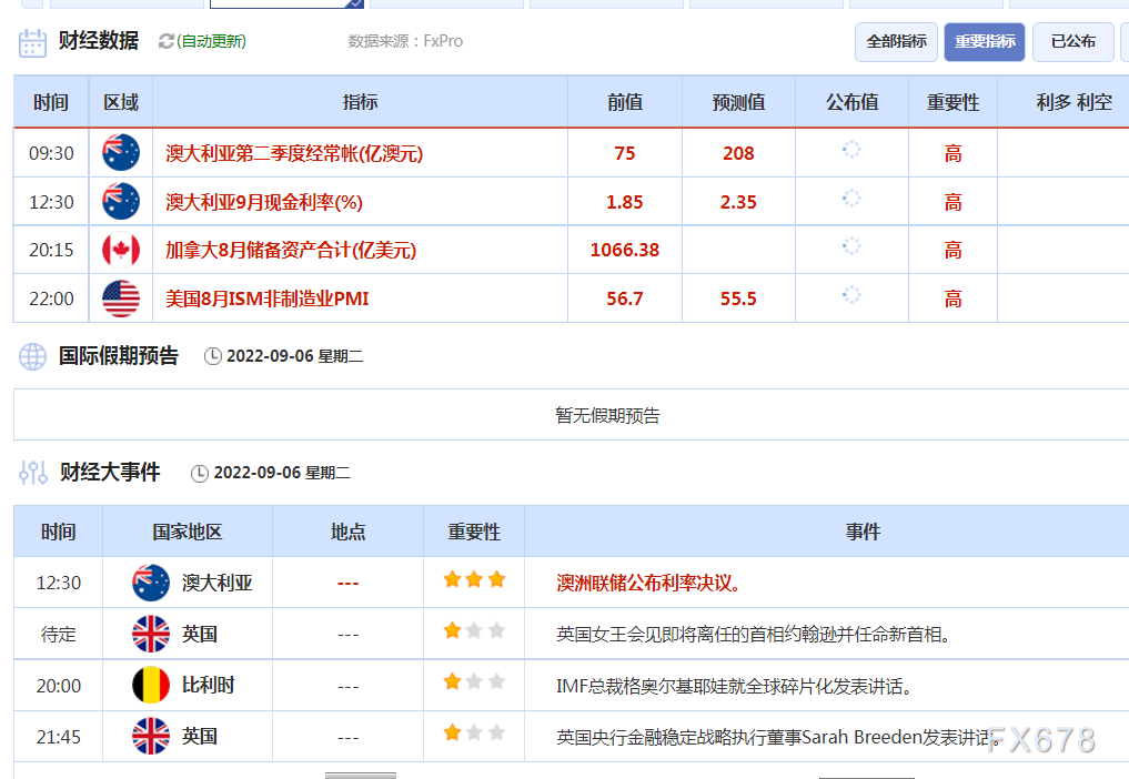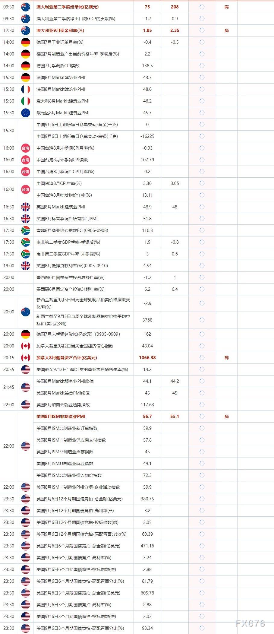 9月6日重点数据和大事件前瞻