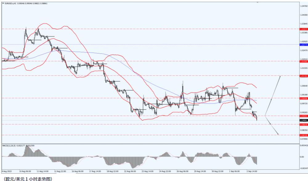 欧元/美元 欧元兑美元上涨0.21%,扳回了前一天的部分跌幅,但位于平价下方,报0.9965美元;欧洲央行将于本周召开会议,货币市场押注其将史无前例地加息75个基点。 操作思路: 今日关注0.9909