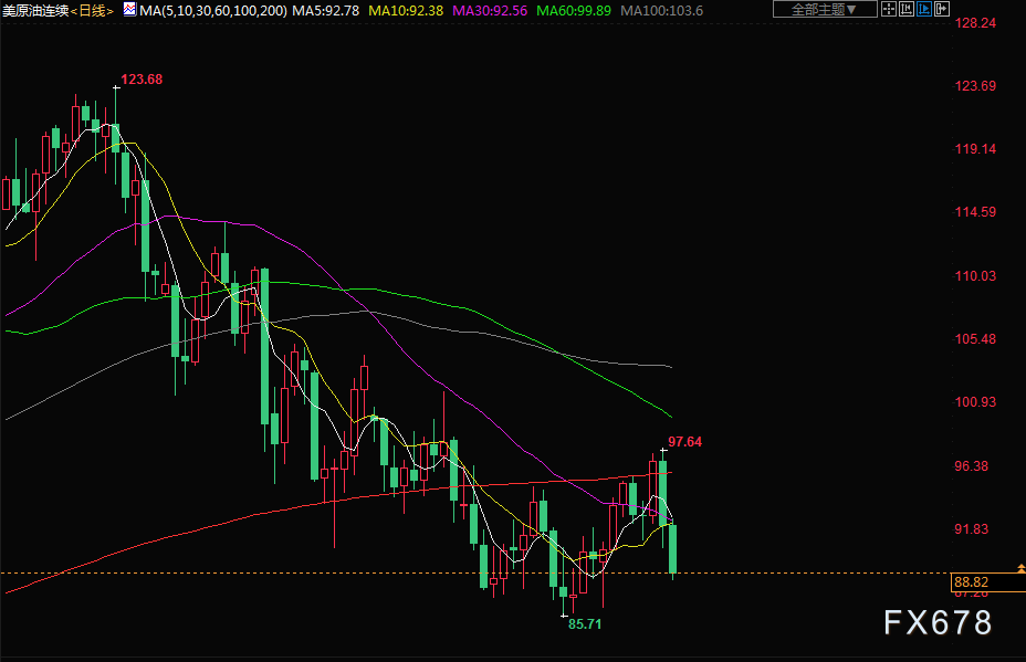 市场为美联储更多加息做准备金价连跌五个月,油价下破90关口