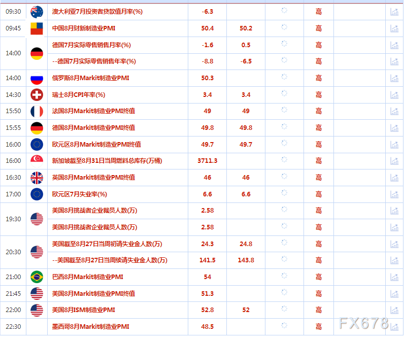 9月1日重点数据和大事件前瞻