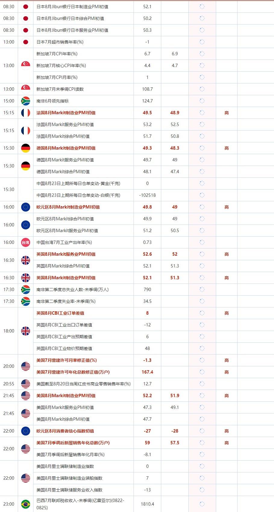 8月23日重点数据和大事件前瞻