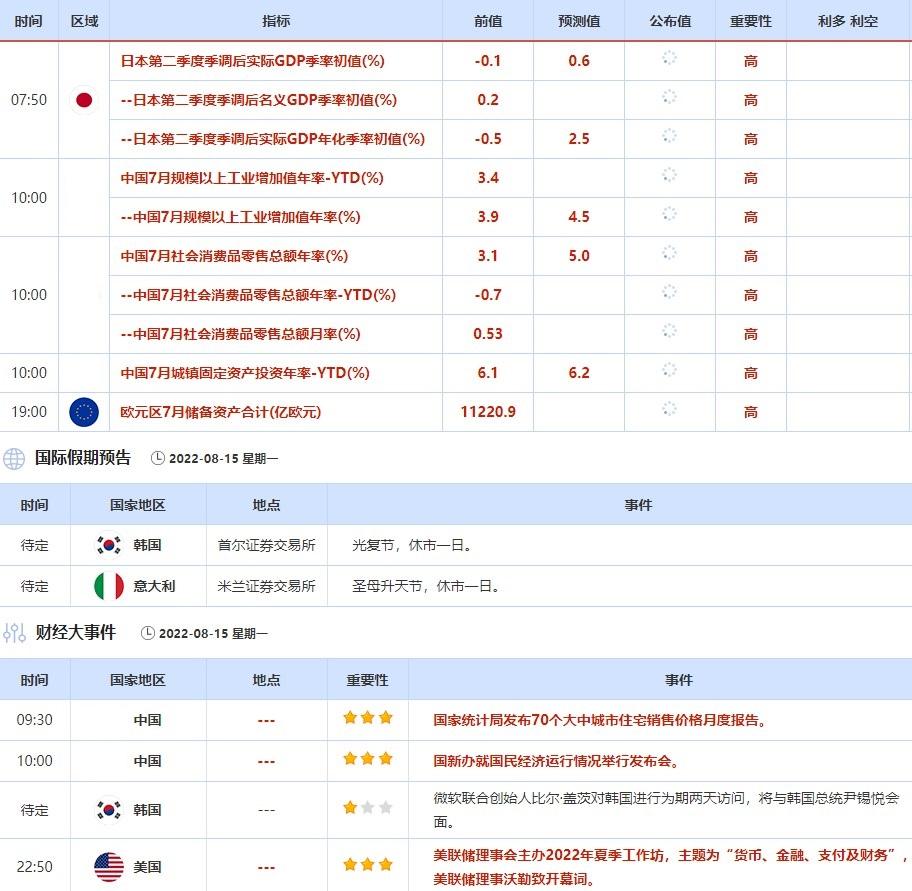 8月15日-8月19日当周重点数据和大事件前瞻