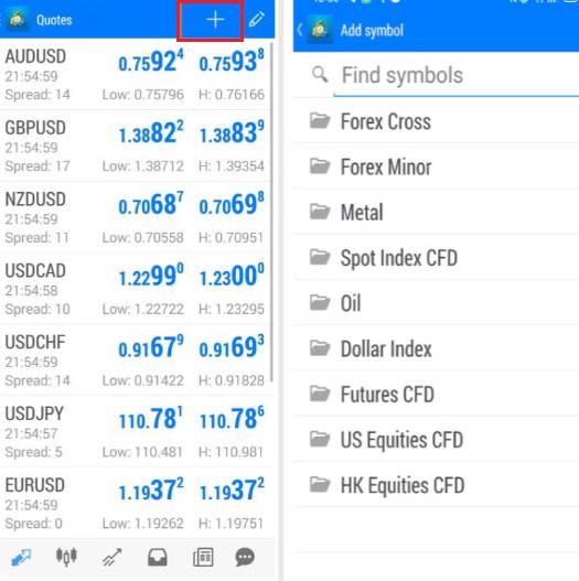 点击右上角图标,选择添加交易品种;Doo Prime 平台包括货币对、贵金属、原油等,可自行添加。