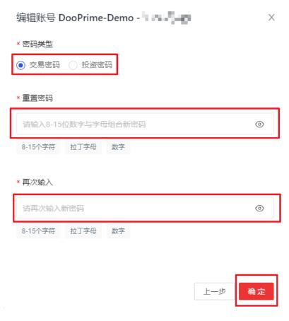 3. 选择您需要重置的密码类型,重置一组 8-15 位数字与字母组合的新密码,再次输入新密码,然后按确定。 重置密码后需要通过电邮或手机进行验证,完成后即可启用新密码。