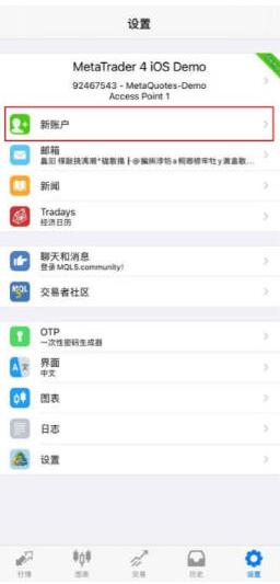 点击「设置」后将会出现以下页面,可点击「新账户」。