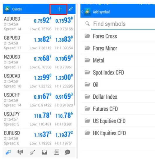 登录交易账号之后会跳转至交易品种快捷列表,可以自由选择显示的交易品种方便在交易过程中查看。