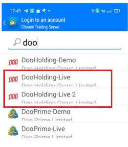 在选择交易商的页面输入「DooPrime-live」 或 「DooPrime-live2」,选择实盘服务器「DooPrime-Live 2」。(Doo Prime 是使用正版 MetaTrader 4 软件的正规经纪商,如果是使用盗版软件的虚假经纪商,此处将搜索不到服务器。)