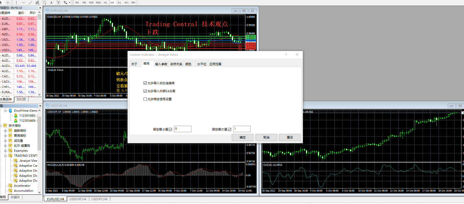 5.现在您需要重启 MT4 客户端,然后开始设置 Trading Central 的指标