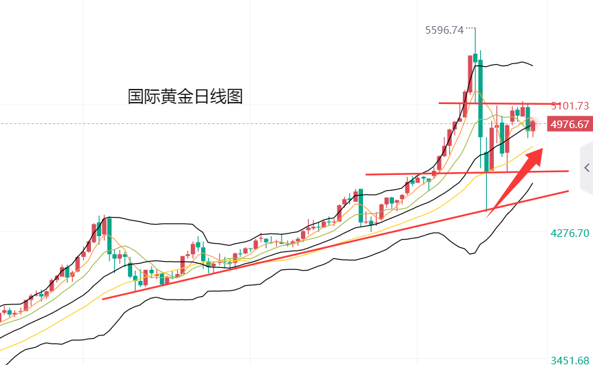 昨日周四欧美盘,黄金一度保持高位震荡,基本维持5040到5080美元区间运行,直到深夜(周五凌晨)美盘盘中,黄金短线跳水,30分钟时间急跌近200美元,刷新本周低点至4878美元,反弹4982美元遇阻后,黄金震荡回落,跌至4888美元,在本周低点附近企稳,此后金价震荡回升,最高涨至4997美元,在5000美元整数关口附近遇阻,目前交投于4977美元。