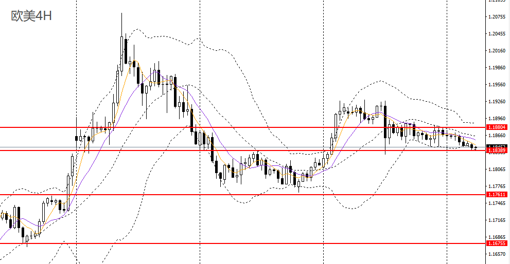 欧美昨日小幅下挫,回踩10日均线,日线RSI跌至50附近,4小时回踩1.1840一线支撑,短线趋势进一步走弱,如彻底下破,后市可看空至1.1780-1.18。