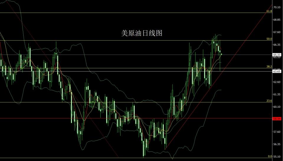 美原油:今日64.4的多止损63.9,目标看65.5和66和66.5-66.8.