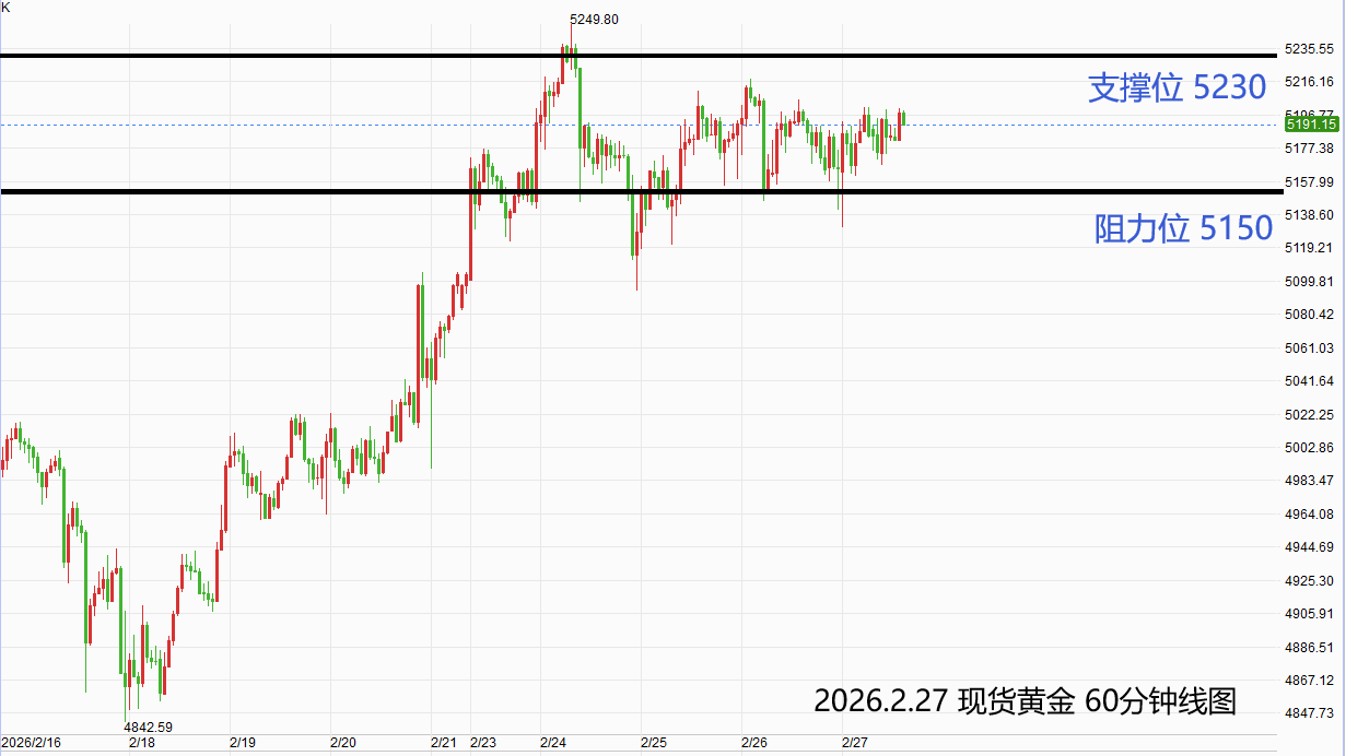 现货黄金:激进者高空低多操作,空单参考价5190-5200,止损位5230,获利目标5150附近/以下。