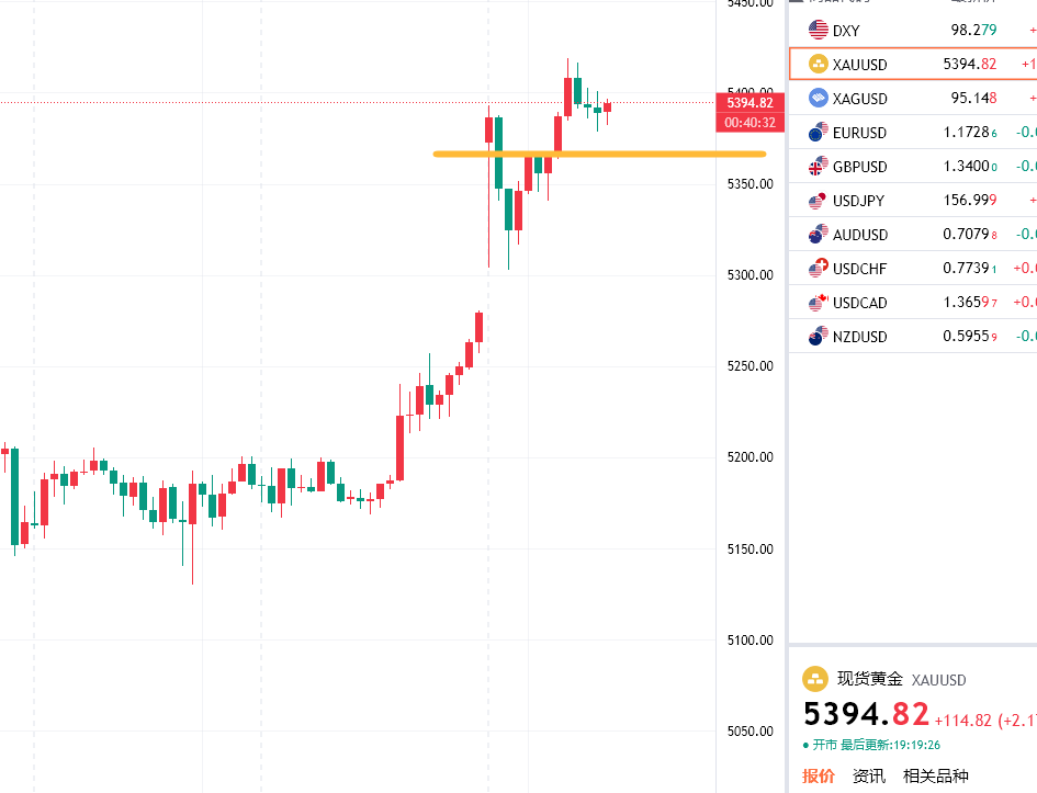 黄金回踩5374附近多,防守5362,目标看5420/5450一线