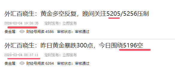 3月5日黄金短线交易:5218附近空,止损5232,止盈看5155、5100