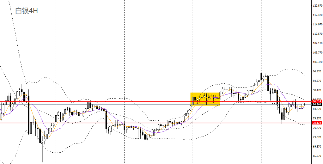 白银小幅回升,守住日线布林中轨,日线RSI仍位于50左右,4小时上探86一线压力,短线趋势转强,但做多仍需谨慎,稳健者建议保持观望。