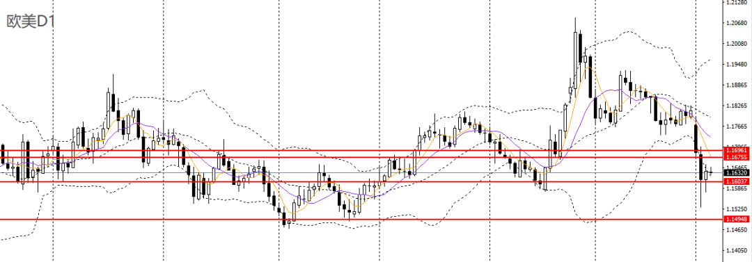 欧美周三小幅回升,徘徊于日线布林下轨附近,4小时延续回升,但1.1670附近面临强压,如无法升破可维持高空思路。