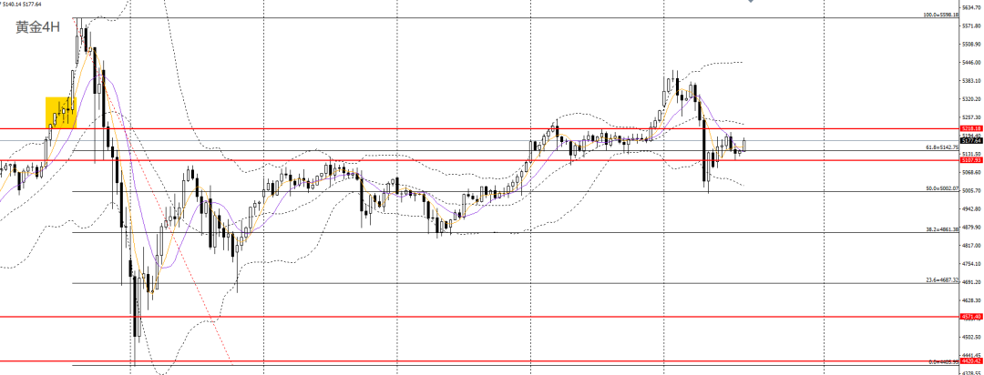 黄金昨日收小阳线,仍立于上行趋势线之上,4小时多头力量不足,短线仍趋于震荡,稳健者可保持观望,如于5130-5140一带企稳可进多。黄金/人民币如于1140-1145一带企稳可进多。
