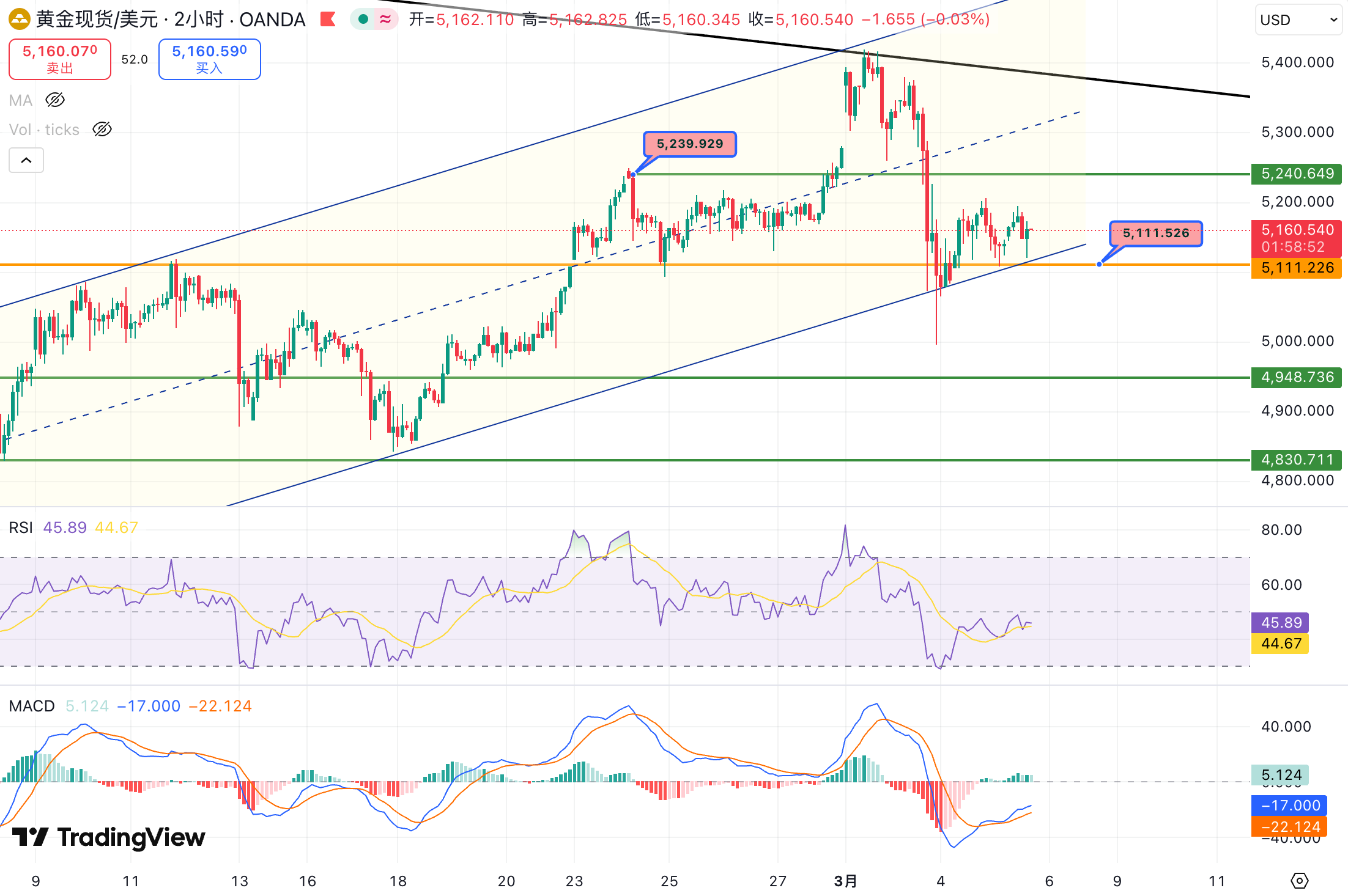 若要重新确认多头趋势,我认为至少需要看到价格有效突破5240阻力位。在此之前,只要5240未被突破,市场中的反弹都更应视为阶段性的修复行情。