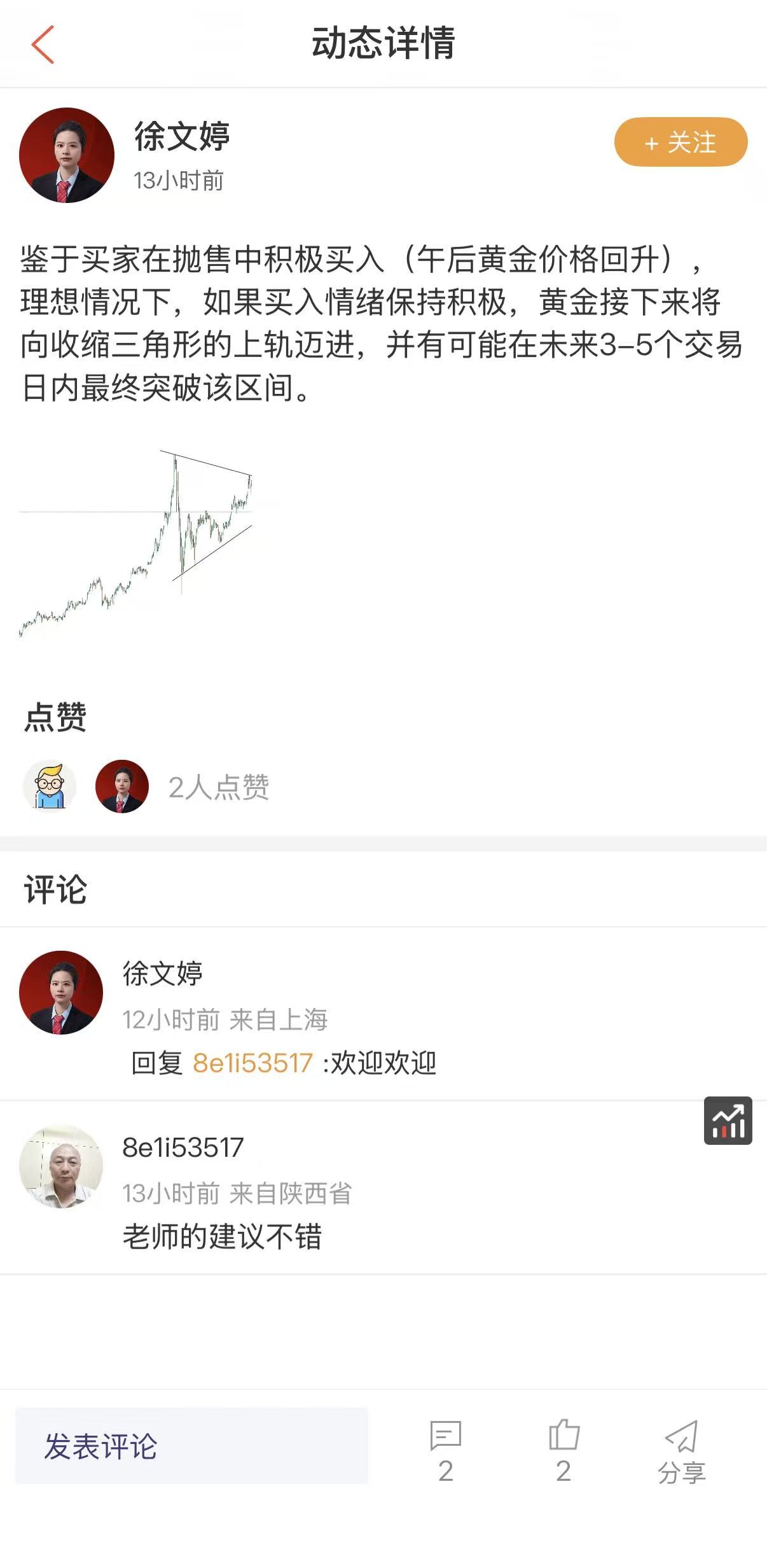 徐文婷早评:突破关键压力,黄金短线转强