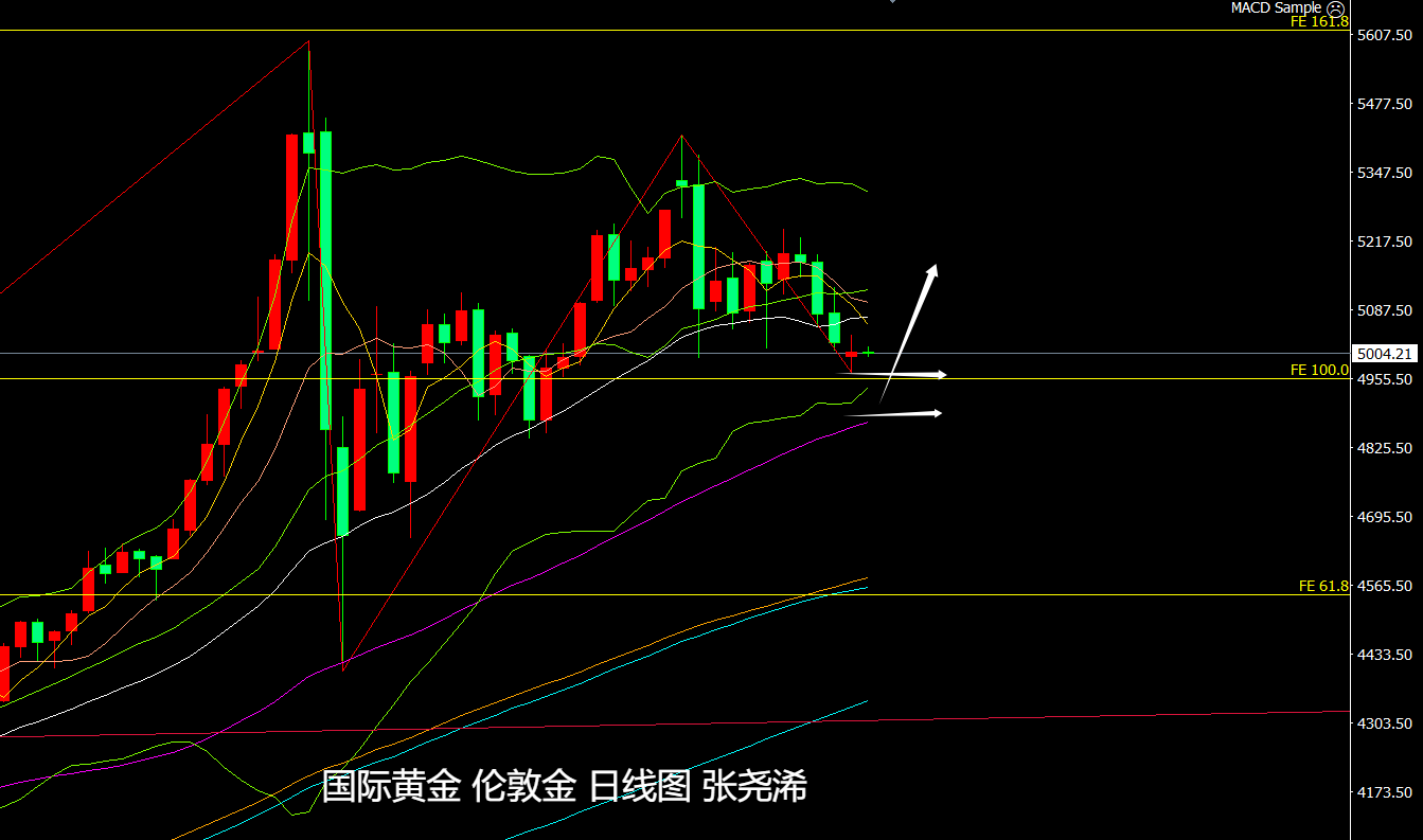 黄金:下方关注4980美元或4955美元附近支撑;上方关注5035美元或5060美元附近阻力;