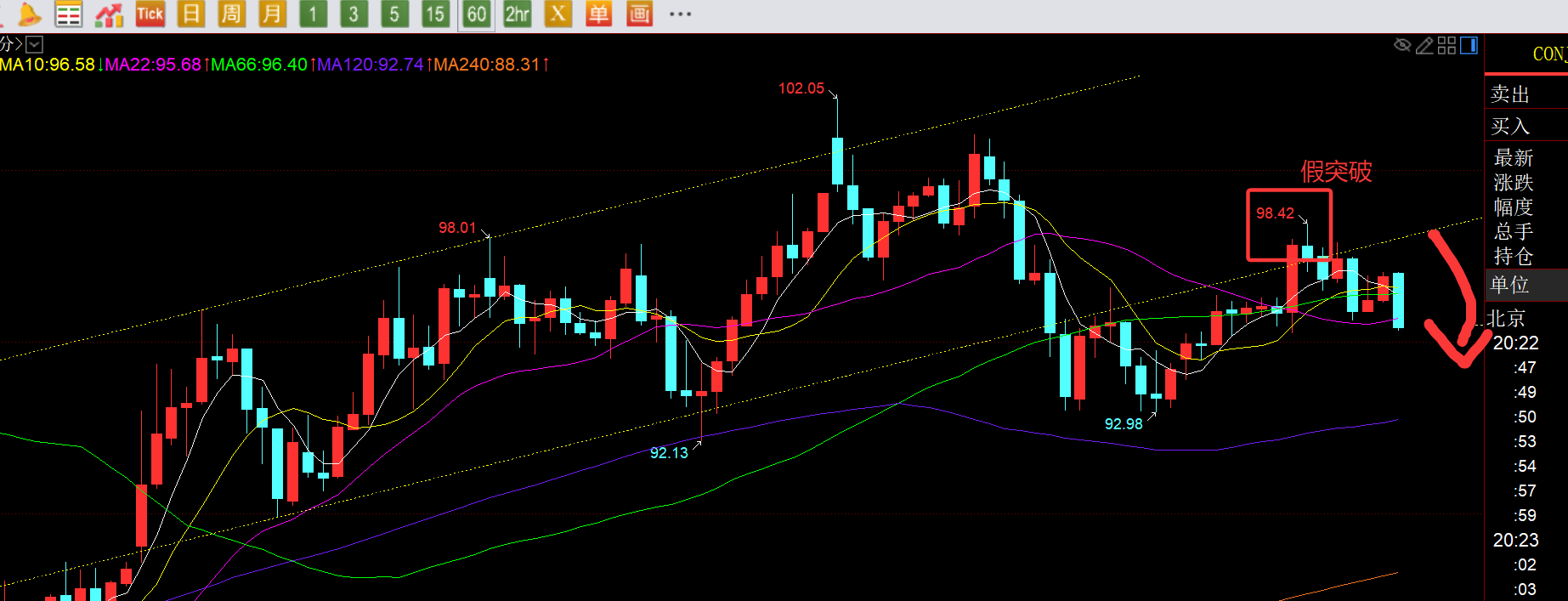 原油方面:昨日大阴,今日基本就是选择逢高看南回测,而日内的走势仍相对抗跌些,欧盘期间也出现了一次假突破;今晚98下阻力,93上支撑,区间先关注它,逢高看压制,破支撑再下移;
