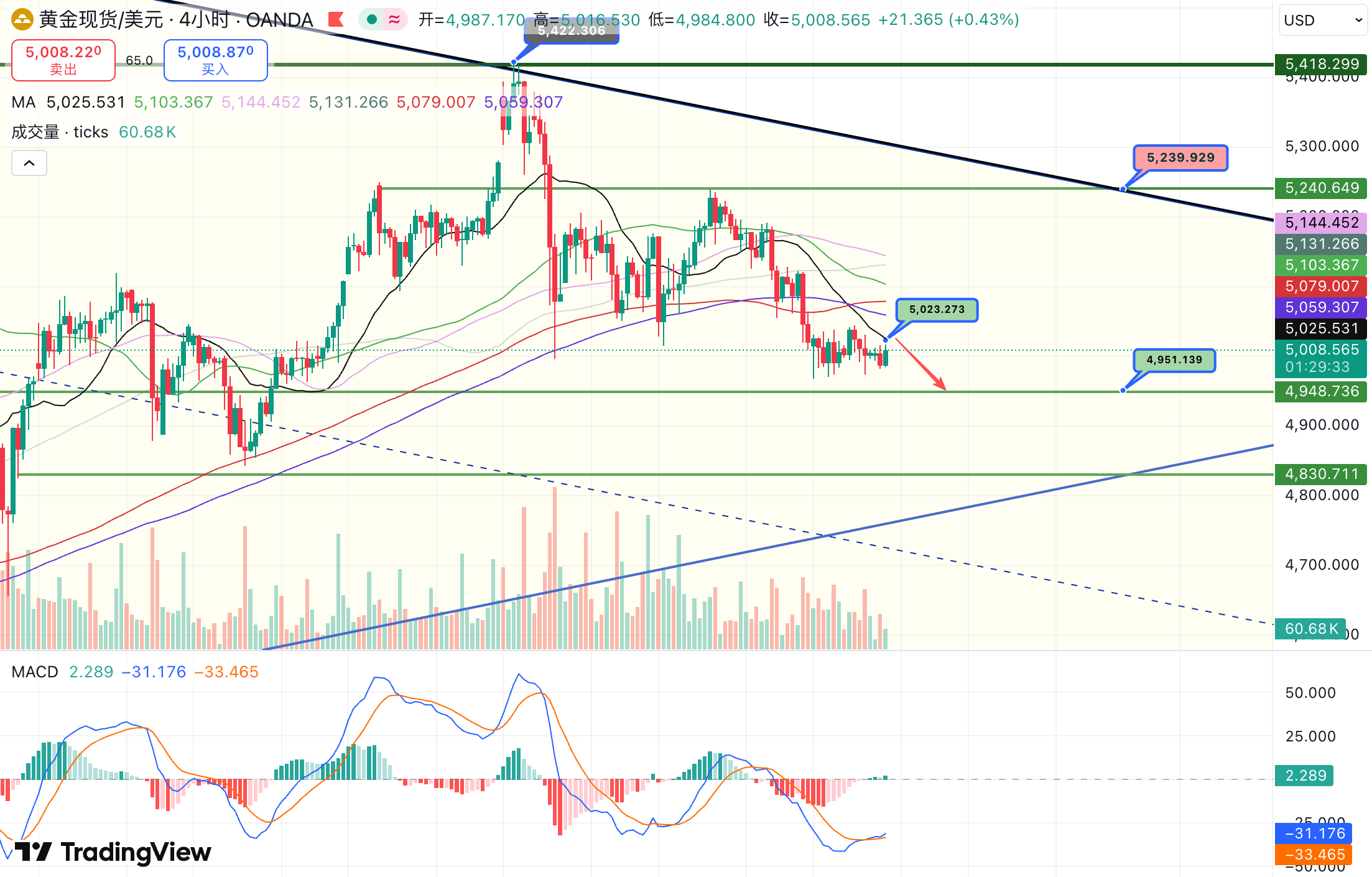 4997 → 4980 → 4950(破位后延伸)
