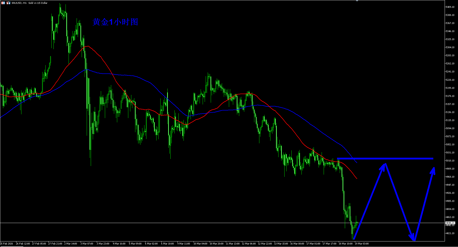 黄金1小时昨天再次破位下跌之后,黄金短线整体呈现偏弱势的格局,不过目前来说并不是说牛市结束,黄金也就是继续开始震荡而已,而且鲍威尔偏鹰派的讲话让黄金走低之后也还是继续快速拉回,整体下方还是有很强的承接力开始逐步显现。上方继续关注5020的阻力压制,短期黄金5020不向上突破,那么黄金可能维持在这下方继续震荡,黄金下方4800守不住就要重点关注4650一线的支撑了,也就是上次到位4400之后上涨回踩的二次起涨点,这个位置短线还是有强支撑。
