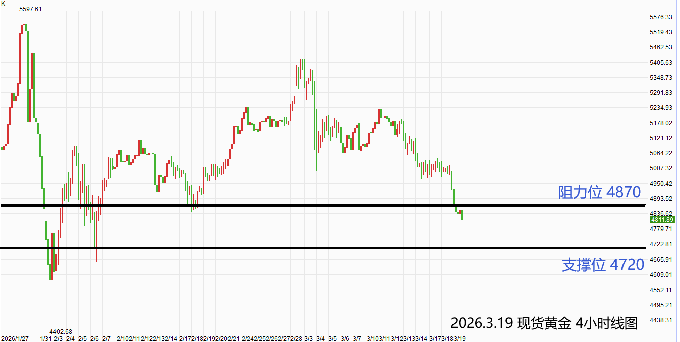 现货黄金:激进者偏空操作,空单参考价4830-4850,止损位4870,获利目标4720附近/以下。