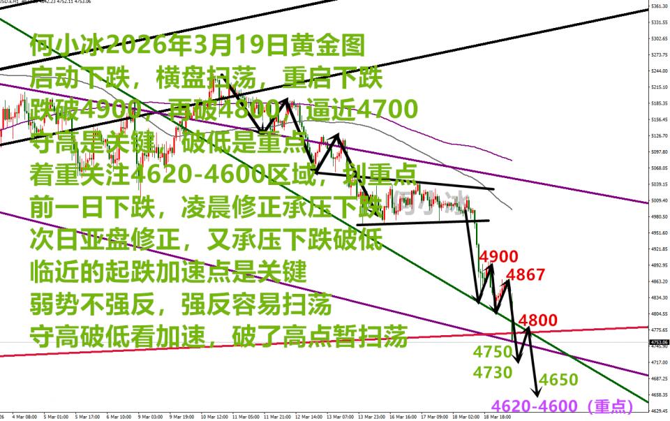 2、直接下跌,首次触及4620-4600范围可多,防守4590下方,往上看4700-4730