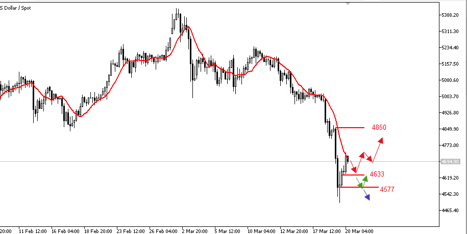 反之,如果黄金价格守住 4650 美元上方,短期阻力位将在 4850 美元附近,该价位由 2 月 17 日的低点转化而来。短期交易应继续以卖单为主。