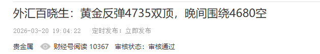 3月21日黄金短线交易:4600附近空,止损4620,止盈4385